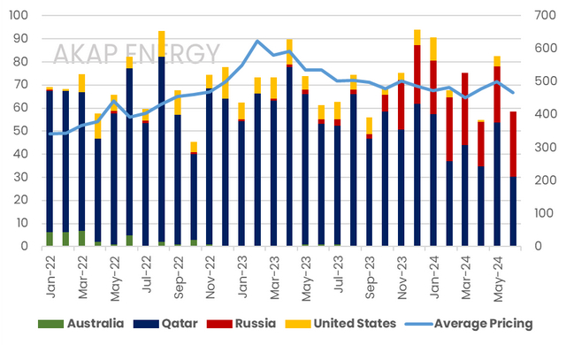 分地区的中国氦气进口来源,美国来源在近几年快速减少,逐渐被卡塔尔所取代 数据来源:AKAP ENERGY