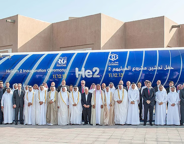 卡塔尔与伊朗共享的北地平原气田是全球最大的氦气储藏地之一,约占全球氦气储量的28%以上,但由于伊朗方面缺乏相关的技术,无法从气田中开采出氦气。而卡塔尔则借助欧美国家的资本和技术,成功开采出了氦气。2005年,在法国液化空气集团(Air Liquide)的帮助下,卡塔尔第一个氦气生产设施成功投产,开始成为世界氦气出口国之一。2014年,在埃克森美孚(ExxonMobil)、液化空气集团 (Air Liquide)、林德公司(The Linde Group)等企业的帮助下,卡特尔第二座氦气工厂Helium 2正式投产运营,规模是前者的两倍,是世界上最大的氦气生产设施。