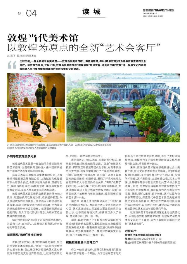 敦煌当代美术馆依托杨浦区的全方位资源优势,以国际视野打造独特 IP 属性,为敦煌文化的传播与交流树立了典范,成为了敦煌面向国际的全新“艺术会客厅”。