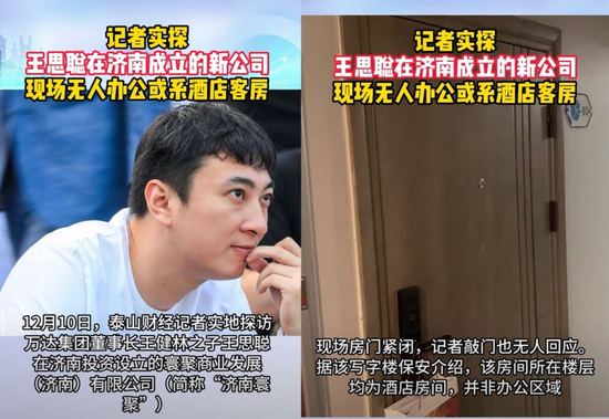 据《山东商报》社旗下泰山财经记者实探王思聪在济南成立的新公司,现场无人办公或系酒店客房。