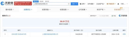天眼查法律诉讼信息显示,近日,王思聪持股公司“上海爱洛星食品有限公司”新增1条被执行人信息,执行标的14.8万。王思聪持有该公司约20%股份,同时担任公司监事。天眼风险信息显示,该公司还存在限制消费令和股权冻结信息。