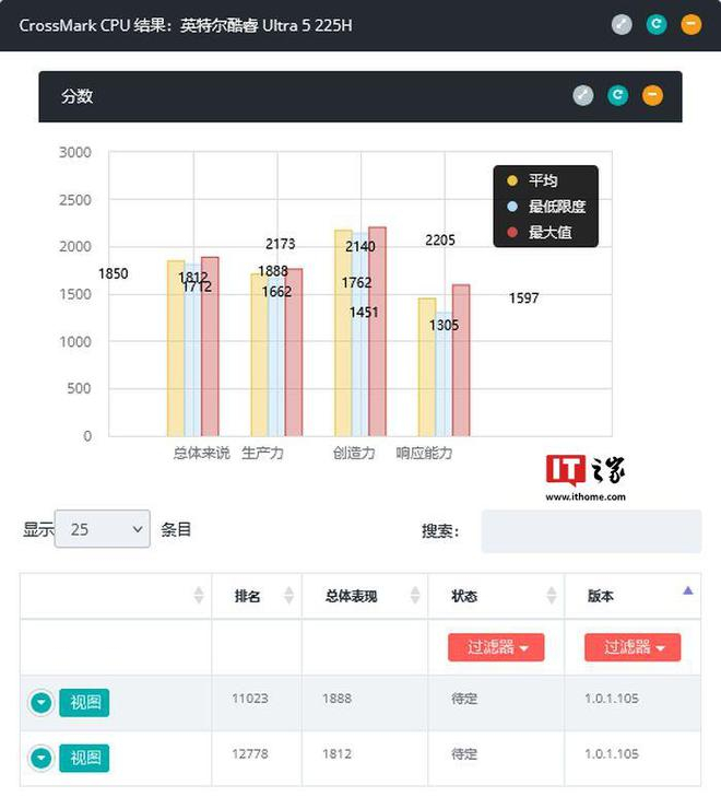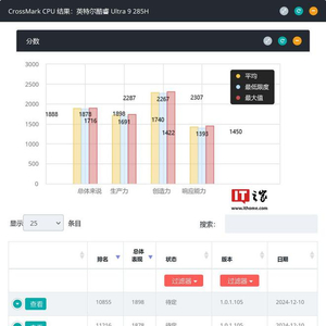 IT之家 12 月 11 日消息,消息源 @momomo_us 今天(12 月 11 日)在 X 平台发布推文,报道称英特尔酷睿 Ultra 9 285H 和 Ultra 5 225H 两款“Arrow Lake”处理器现身 Bapco CrossMark 跑分库,从跑分来看,相比较上一代提升 11~23%。