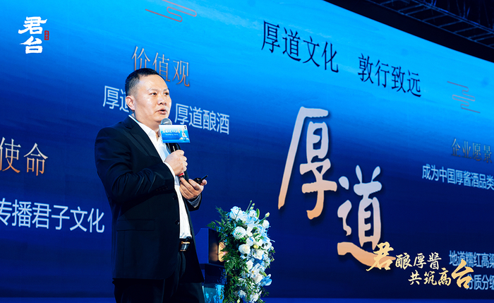 中国酒业协会副秘书长刘振国用三个自信总结了君台厚酱酒业取得的发展成果,即酱酒品类自信、君台品质自信与厚道文化自信。