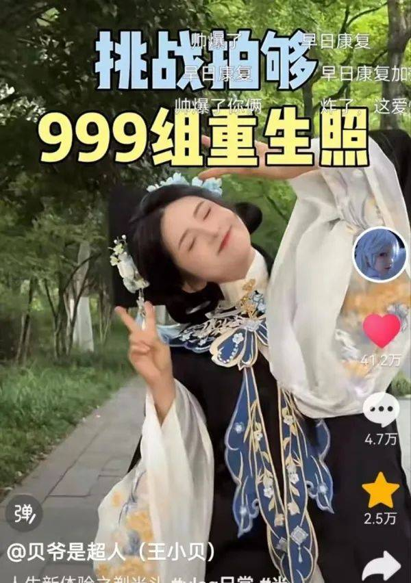 王小贝挑战拍摄999组重生照。