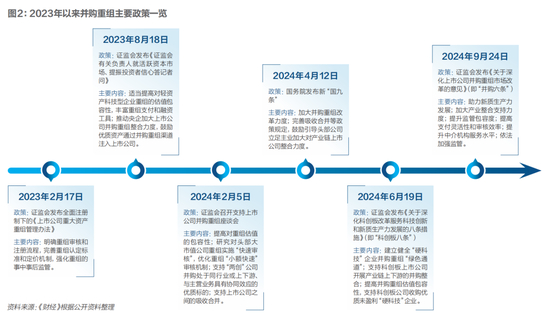 2024年2月,证监会召开上市公司并购重组座谈会,提出五项举措,从提高对重组估值的包容性等方面解决市场痛点。