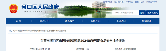 山东省东营市河口区市场监督管理局2024年第五期食品安全抽检通告