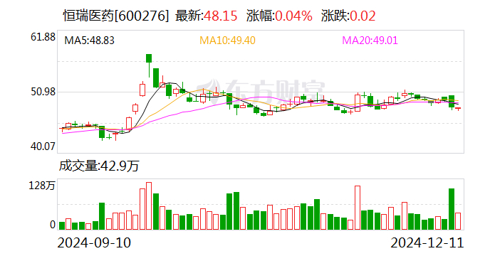 2024年前三季度,恒瑞医药实现收入201.89亿元,归母净利润46.20亿元。