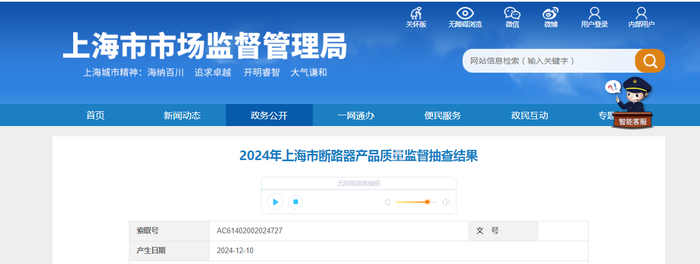 中国质量新闻网讯 近日,2024年上海市断路器产品质量监督抽查结果公布。