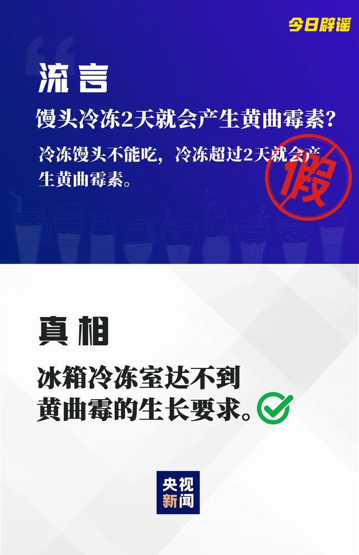黄曲霉素需要在湿度80%至90%、温度25℃至30℃的条件下产生,冰箱冷冻层产生黄曲霉素的可能性很低。只要馒头在放入冰箱前未受污染,且冰箱内也是干净的,那么滋生黄曲霉的可能性就很小。