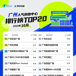 赢商tech与高德地图最新发布的《10月广州人气购物中心榜》,风云搅动,看点十足。