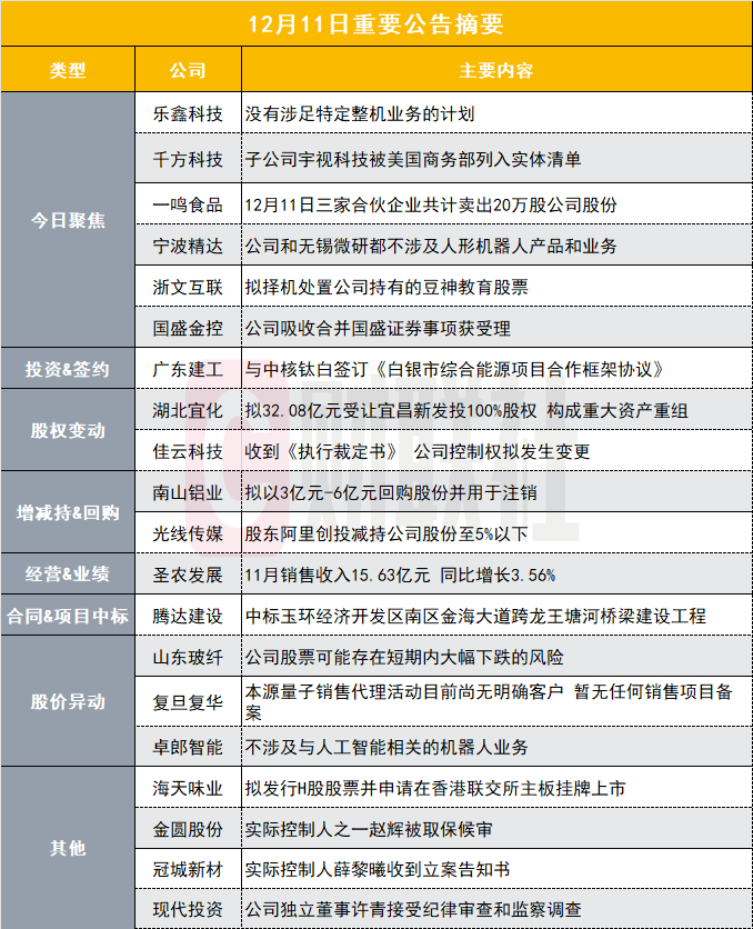 广东建工公告,12月11日,公司与中核华原钛白股份有限公司(简称“中核钛白”)签订《白银市综合能源项目合作框架协议》,双方拟在甘肃省白银市共同投资开发包括热电联产项目、源网荷储项目、景泰新能源项目三个综合能源项目,上述项目当前计划投资额约为42.7亿元。