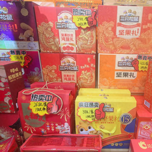 “卖得比较好的是这款29元的,还有这款40多的。”一位批发商户对财联社记者介绍。在其门店内,陈列着三只松鼠(300783.SZ)、洽洽食品(002557.SZ)、徐福记等多个品牌的零食礼盒,价格从26元到150元不等,大多数价位在100元以下。