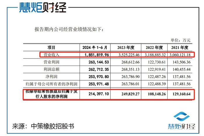 事实上,在2023年之前的三年中,扣非净利润增速的持续下滑,是中策橡胶此次上交所主板上市不得不面对的客观问题。