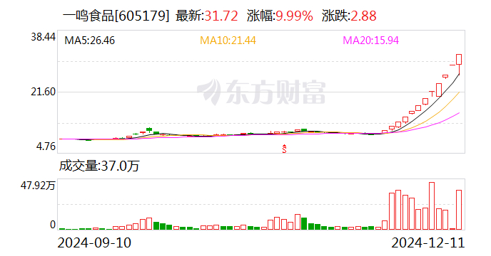 具体来看,一鸣食品的股票于2024年11月26日至2024年12月11日期间,连续12个交易日内累计涨跌幅偏离值达200%,公司表示:“公司股价短期内波动较大,存在较高的炒作风险。”