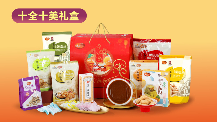 据介绍,迎接2025年春节,龙泉食品集团延续“龙泉特色”、坚持“传承经典”,将龙泉年糕、龙泉盐焗鸡、各类海南手信、生活必需干货产品作为“主打”,持续推出米花酥、香酥角、金果等海南过年必备产品。此外,椰子酥、果仁酥、椰子软饼、年轮酥和蛋黄酥作为海南特色手信产品,仍是外来过冬旅客的“海南年味”首选。各式年货礼盒、年年高(龙泉年糕系列)、春节伴手礼、常回家看看(副食类)等四大品类近40多种年货产品,可满足春节期间消费者走亲访友的不同需求。