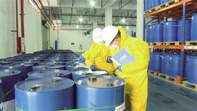 在位于乌达产业园的内蒙古源宏精细化工有限公司生产车间里,巡检员正在查看反应釜和各类仪表,并及时记录设备运行情况;智能仓库内,智能叉车正在搬运码放成品。