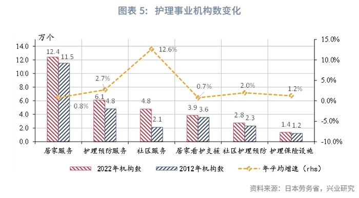 [16] 注:此处口径为居家服务事业所(居宅サービス事業所),资料来源日本劳务省《2022年护理服务机构/企业调查概览》。