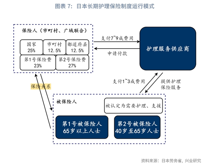 2024年12月9日,据相关报道,“关于长护险全国铺开的制度文件已经制定完成,很大可能在今年年底或明年年初出台公布,焦点内容包括采取定比的筹资机制、退休人员同时缴费、缴费标准按照年龄有所区分、统一规范服务项目等”。此前,二十届三中全会审议通过《关于进一步全面深化改革 推进中国式现代化的决定》,提出“加快建立长期护理保险制度”。我们曾在2024年7月16日发布报告:《以长期护理险为支柱的日本养老模式——日本养老体系观察(下篇)》,介绍了日本养老模式,日本长期护理保险制度,并做了中日对比。特此重发,以飨读者。