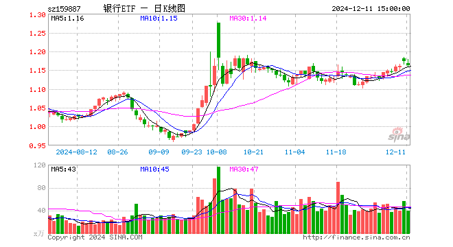 12月11日银行ETF(159887)份额减少30.00万份,最新份额3.15亿份,最新规模3.65亿元