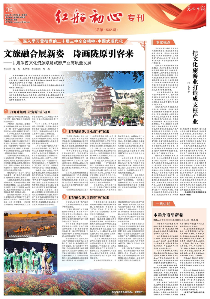 在2023年甘肃省印发的《关于推动文化和旅游深度融合实现高质量发展的实施意见》中,重点部署“推动全域文化旅游资源利用融合”“全力推动文化旅游产品融合创新”“全产业链促进文化旅游产业高质量发展”“全方位推进文化旅游市场和合共生”4个方面的18项任务,“融合”成为甘肃文旅发展的着力点。