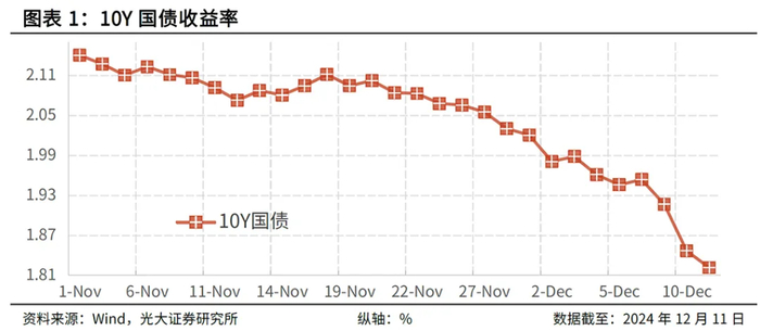另如,12月9日政治局会议提出明年将实施适度宽松的货币政策,这也对债券市场的上涨形成了支撑。需要注意的是,政治局会议不仅提出要“实施适度宽松的货币政策”,还强调要“推动经济持续回升向好”,这两者对于债券收益率的影响方向刚好相反。