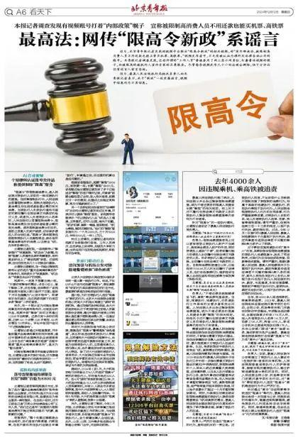 近日,最高人民法院执行局相关负责人向北青报记者表示,关于“新政”一说实属谣言,视频中信息均为不实信息。