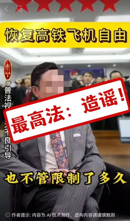 限高人员不还钱也能坐飞机、高铁?最高法:网传“限高令新政” 系谣言