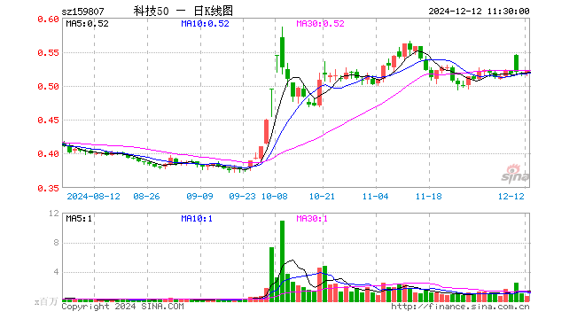 科技ETF(159807)涨0.58%,半日成交额3341.66万元