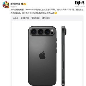 供应链消息称苹果iPhone 17系列背面改用条形横置摄像模组