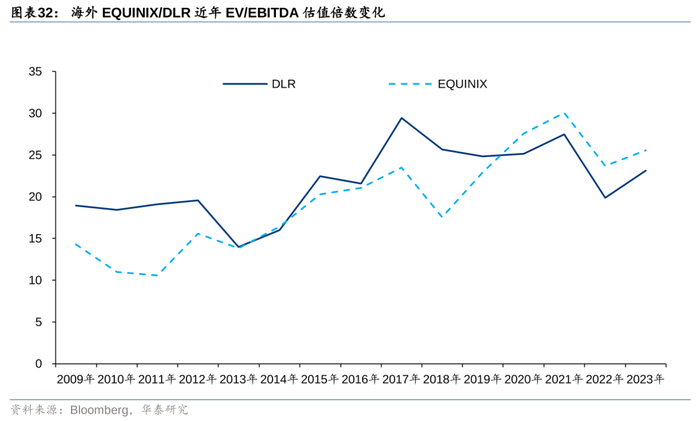 此外,我们建议关注数据中心REITS发行对行业带来的积极影响。2024年4月18日,润泽科技公告宣布其董事会审议通过《公募REITS申报发行工作的议案》,全资子公司润泽发展计划以国际信息云聚核港项目-数据中心A18建设项目作为发起REITS的底层资产,开展REITS试点申报工作。世纪互联在其3Q24季报中披露,公司计划在2024年底之前,与国内一家领先保险集团签署pre-REITS合作协议,联合发起国内首个针对成熟算力基础设施的pre-REITS基金。我们观察到海外数据中心龙头EQUINIX、DLR分别在2015年、2007年完成REITS基金的发行,建议关注国内数据中心REITS发行对行业带来的积极影响。
