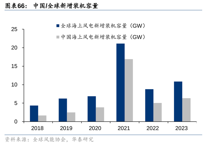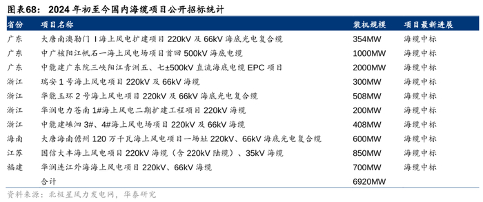 国内海风招投标节奏提速,海缆板块有望显著受益。经过 2022-2023 年的调整,2024年初以来,国内海风建设进入规范化发展阶段,项目审批和招标节奏延续回升,国内江苏、广东、浙江、山东、海南、福建多个海上风电项目进展不断,其中海缆项目共招标6.9GW。从我国规划来看,2021-2025年“十四五”期间,我国各省市规划海风目标近60GW,根据全球风能协会统计,我国21-23年海上风电累计新增装机量28GW,24-25年装机量有望达30GW左右,今明两年海风装机速度有望明显提升,海缆作为核心设备有望充分受益。从市场规模角度看,2023年我国海缆市场规模约为137亿元,根据立鼎产业研究预测,2025年市场规模有望达224亿元,24-25年CAGR 27.9%。