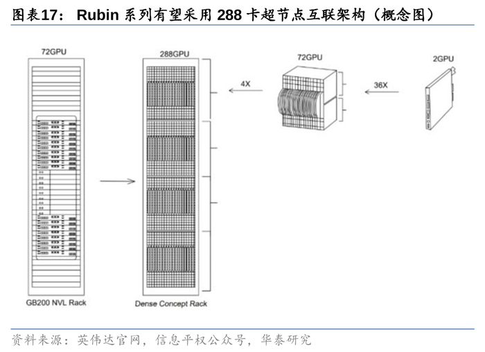 海外:黄仁勋称“尽可能多用电信号”、英伟达后续Rubin系列有望持续追求超节点,铜的生命周期或延长。根据英伟达CEO黄仁勋与ARM CEO哈斯10月对话播客,黄仁勋称“尽可能坚持用电信号(用铜来导电),这样可以避免过多地从电信号转向光信号,我们拥有的大多数数据中心都在采用电信号,电信号更具成本效益也更加可靠”。我们观察到,英伟达在从Blackwell GPU架构到Rubin系列架构迭代的过程中,服务器机柜的设计将继续追求超节点互联,特别是72卡以上互联(如144卡、288卡),届时机柜密度将进一步提升,同时保持柜内互联的短距离特性。我们认为,在解决散热等一系列技术挑战后,铜连接仍将凭借高性价比、低功耗等优势在服务器柜内短距传输领域中占据重要位置。