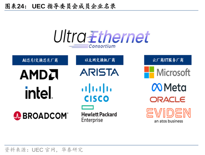 技术趋势:展望25年,以太网协议栈有望进一步升级,将更适合AI场景需求,建议关注UEC/GSE动态。