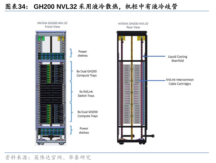 自2025年起,英伟达GB200机柜产品有望步入密集的出货期,由于GB200机架采用了液冷的散热解决方案,其正式批量出货后,一方面,全球数据中心中的液冷渗透率将显著提升,另一方面,也将带动英伟达液冷产业链合作伙伴业绩增长。除Vertiv外,我们观察到AVC、Auras等英伟达液冷合作伙伴同样对未来展望积极。