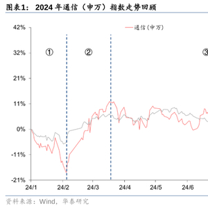 ①第一阶段(2024/1/1~2024/2/5):年初通信(申万)指数累计下跌18%,跟随同期大盘呈现一定调整。电信运营商板块基于低估值、高股息等优势,股价走势较为坚挺,在该阶段中均收获正收益。