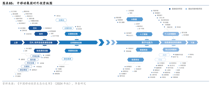 数字化领域,2024年11月15日,证监会正式发布《上市公司监管指引第10号——市值管理》,文件指出,上市公司可以结合自身情况,综合运用并购重组、股权激励、现金分红、投资者关系管理等方式促进上市公司投资价值合理反应上市公司质量。《关于深化上市公司并购重组市场改革的意见》中也指出,支持有助于补链强链和提升关键技术水平的未盈利资产收购、鼓励上市公司加强产业整合。我们关注到,三大运营商作为科技央企标杆,近年来亦围绕新质生产力、数字化业务方向持续加大对外产业投资规模,参股或控股包括AI、量子、大数据等在内的多个产业链上下游环节,“产业链链主”地位进一步强化。