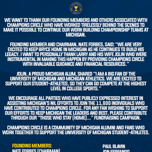 声明中,Champions Circle主席内特·福布斯(Nate Forbes)写道:“我想亲自感谢Larry和他的妻子Jolin,他们通过为Champions Circle提供宝贵的指导和财务资源,在实现这一目标上发挥了重要作用。”