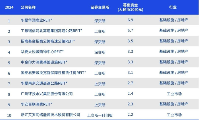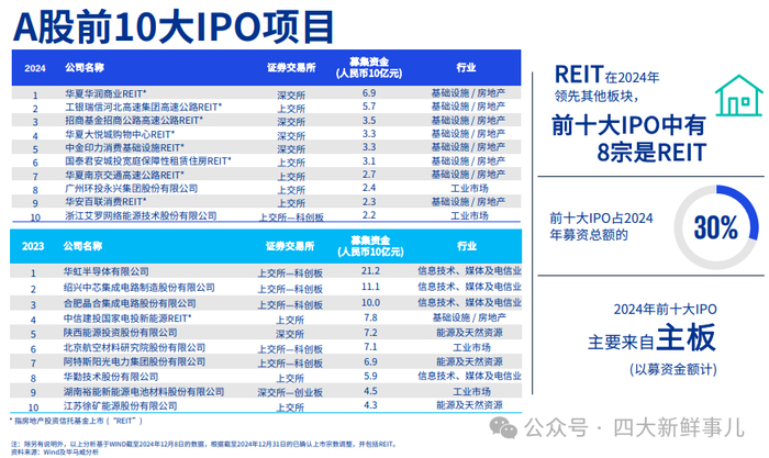 REIT在2024年领先其他板块,前十大IPO中有8宗是REIT。