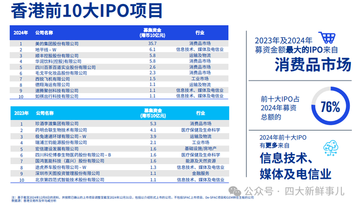 2024年前十大IPO有更多来自信息技术、媒体及电信业。