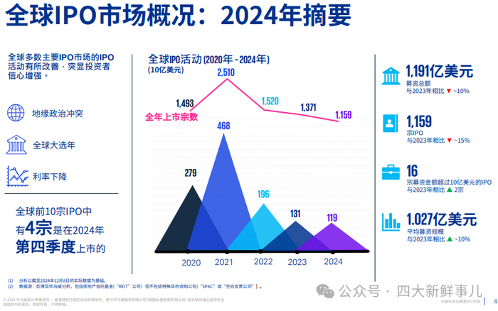 图:2020年-2024年全球IPO活动 (10亿美元)