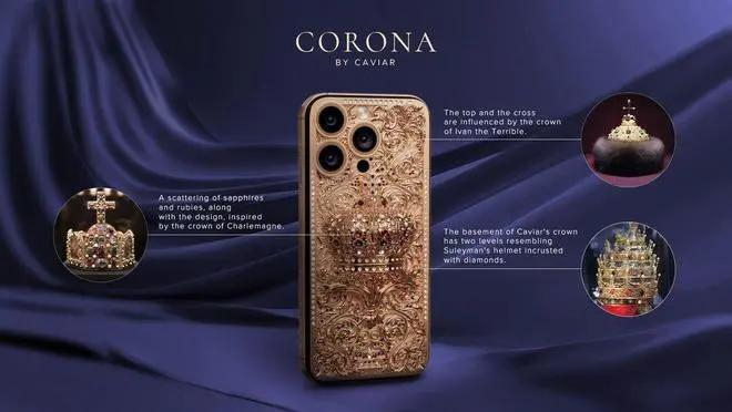 迪拜奢华品公司Caviar再次定制推出全球最贵iPhone 16 Pro Max,装饰18K纯金制成的皇冠,并镶嵌着珍贵的宝石,起售价为301070美元(约218.9万元人民币)。