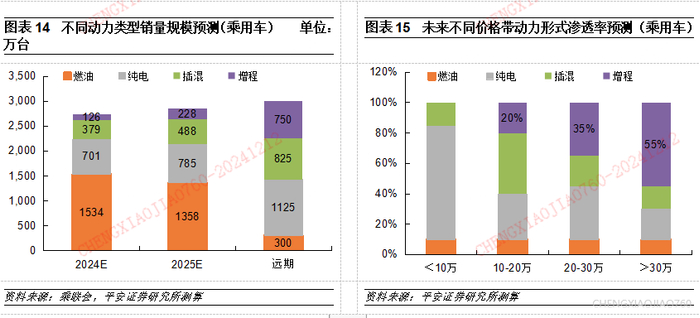 我们认为增程车扩容是未来汽车行业较为确定的趋势之一。我们预计2025年增程车销量有望达到220万台左右,同比增长达到80%,中长期市场规模有望超过700万台,相比2024年有数倍的增长空间。