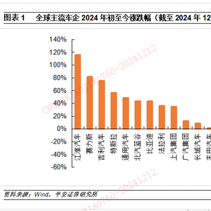 华为系整车表现较强,港股新势力调整幅度较大。比亚迪依然是国内市值最大的车企,市值规模达到1082亿美元,仅次于特斯拉、丰田和法拉利,市值规模位居全球车企第四位,市值相比年初增加43%。2024年表现较强的车企主要集中在“华为系”,江淮汽车、赛力斯、北汽蓝谷三家车企24年涨幅分别达到116%/82%/44%,港股新势力在24年表现偏弱。