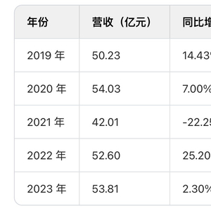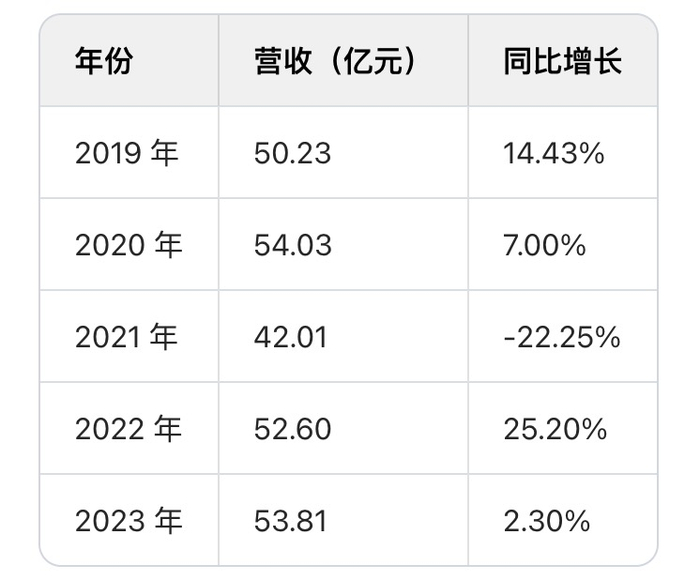 这也意味着老干妈2023年的营收正逼近2020年54亿元的巅峰水平——老干妈的营收在2019年迈上50亿元大关,并在2020年达到54亿元,但在2021年大幅下滑至42.01亿元,直到2022年才拉回至52.60亿元。