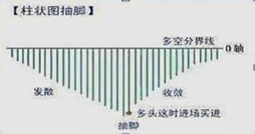 2、抽脚棒:抽脚棒出现,说明DIF、DEA的距离差将变小,进而12日、26日均线的距离差DIF将变小,K线即将上涨或盘整。抽脚棒与K线呈同步或盘调关系。