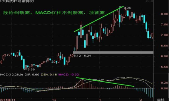 股价阶段新高,MACD绿柱不创阶段新高,属于MACD顶背离。