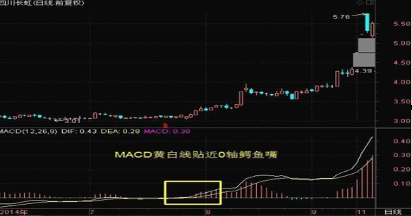MACD黄白线在0轴附近出现鳄鱼嘴形态的,继续看涨!