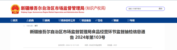 新疆维吾尔自治区市场监督管理局食品经营环节监督抽检信息通告 2024年第103号