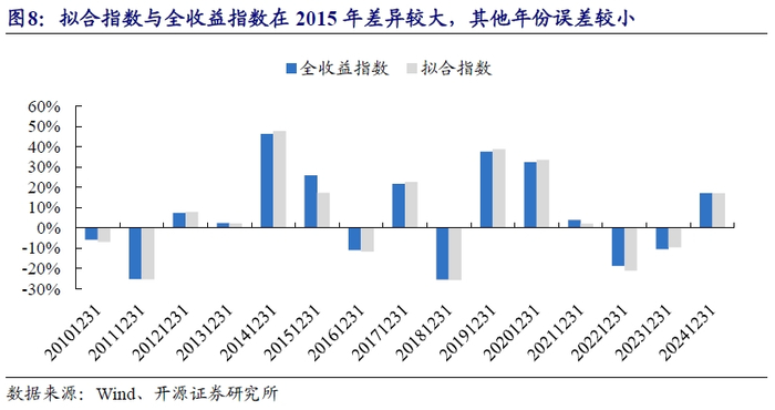 分年度来看,拟合差异主要来源于2015年,二者年度收益相差超8个百分点,在其他年份拟合精度较为接近。