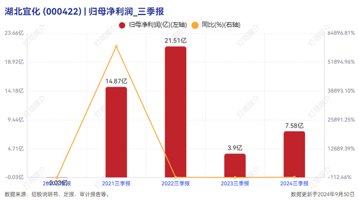 湖北宜化是国内氮肥行业的龙头企业,2024年前三季度实现归母净利润7.58亿元,同比增长94.92%。